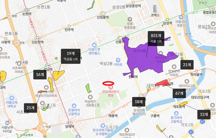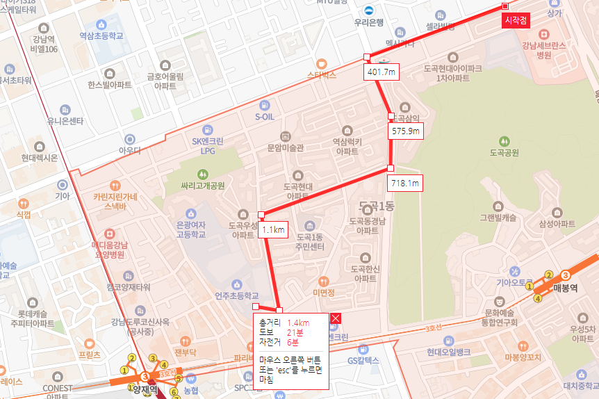 강남구라 강남까지 가까운 건 새삼스럽지 않다.