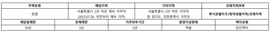 전매제한은 3년, 거주의무기간은 2년이다.