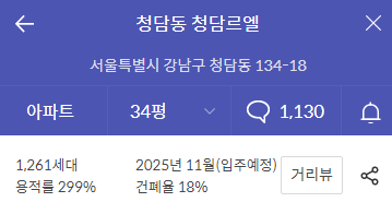 세대수가 더 크고 신축이면서 청담역에 조금은 더 가깝기 때문에 청담르엘은 확실히 로또 청약으로 보인다.