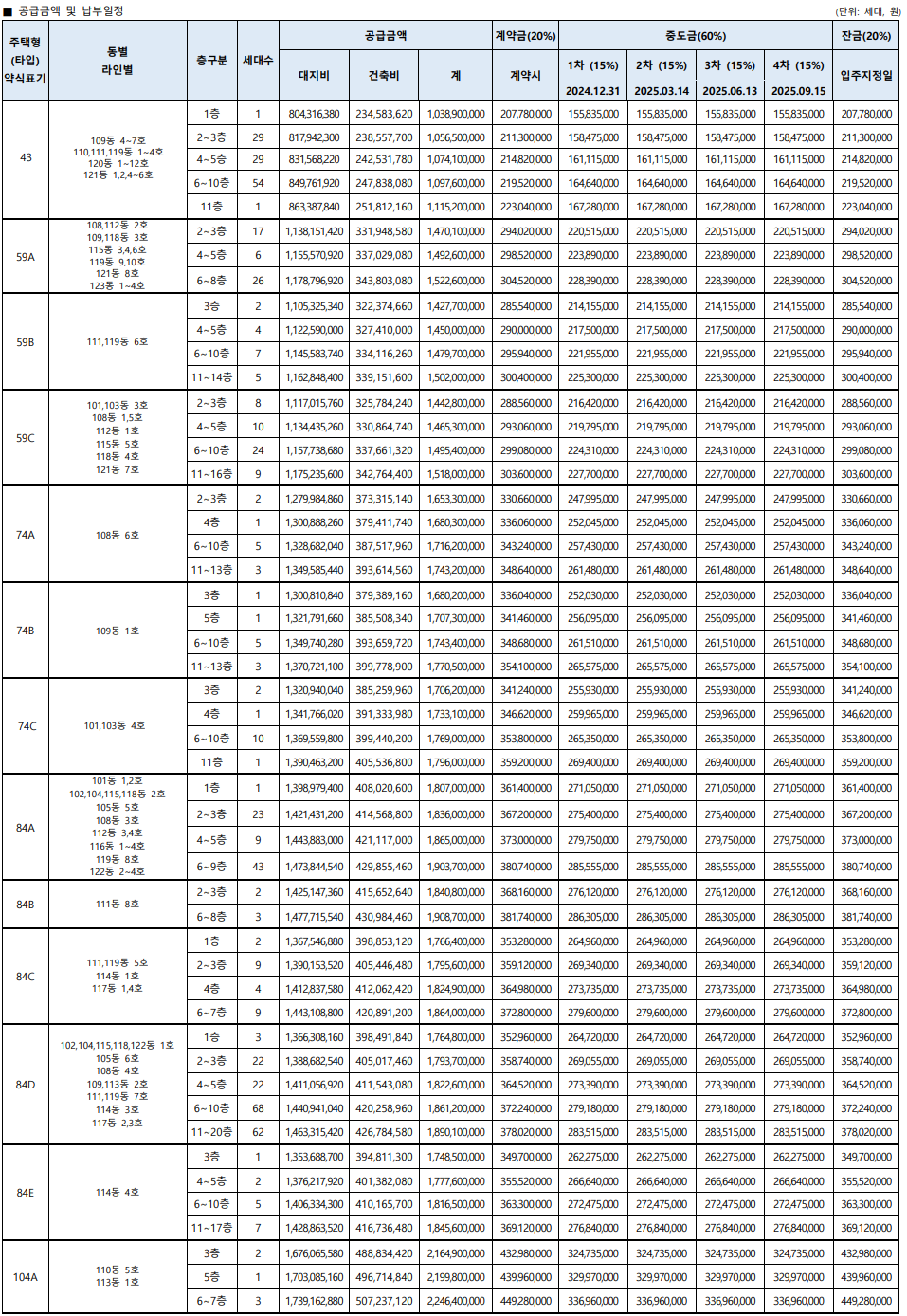 소형평수인 20평형 (전용 43제곱미터)도 꽤 많은 숫자가 공급된다.