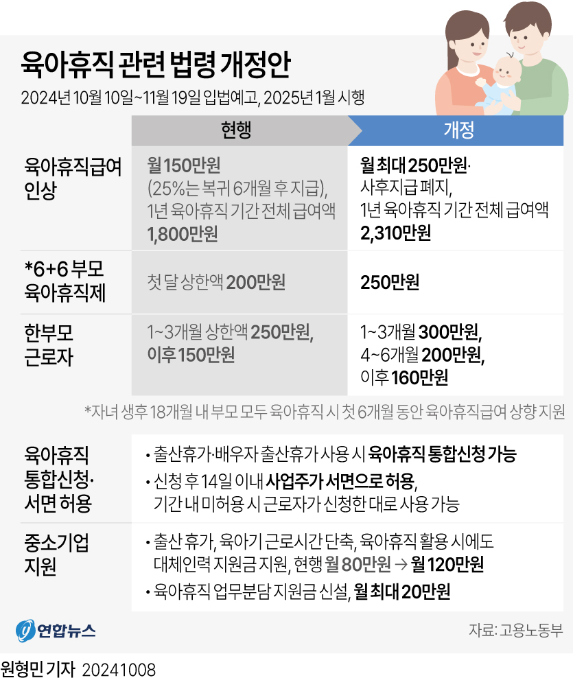 현행 대비는 부부가 받을 수 있는 육아휴직 급여가 총 600만 원 늘어나는 셈이다.