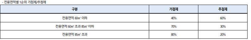 추첨제가 평형이 작을수록 많기 때문에 이런 부분을 고려하여 가점이 낮은 사람은 전략을 세워야 하겠다.