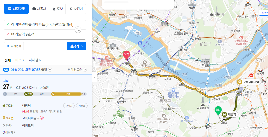 9호선 급행덕에 강남권에서 여의도까지 가는 시간이 많이 단축되었다.