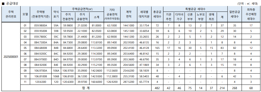 특별공급은 214세대, 일반공급은 268세대로 2025년 새해 첫 청약에 꽤나 많은 세대수가 나온다.