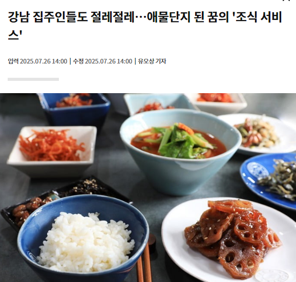 요지는 반포 원베일리, 개포 디에이치퍼스티지아이파크와 같은 고가 아파트들이 야심 차게 도입한 조식 서비스가 유지되기 어려워 사라지고 있다는 내용이다.