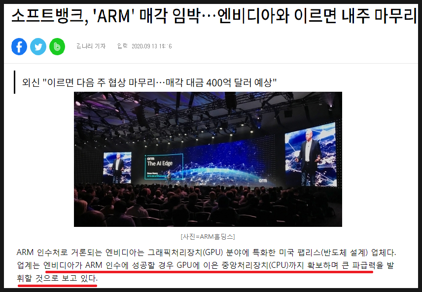 작년 하반기에 미국 NVIDIA사는 영국의 반도체 설계회사 Arm을 인수했습니다.