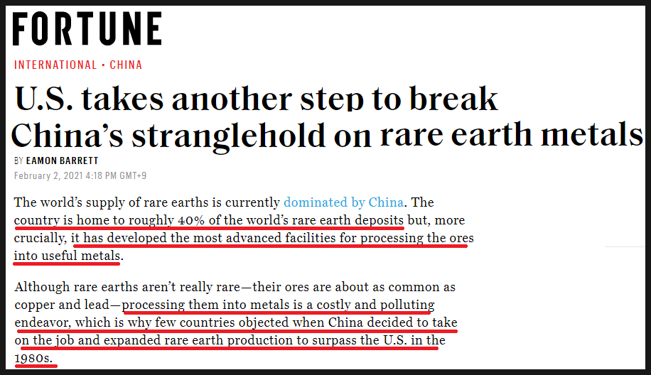 기존까지는 저도 희토류가 중국에 많이 매장되어 있기 때문이라고 생각했습니다만 희토류는 사실 미국에도 충분히 있습니다.