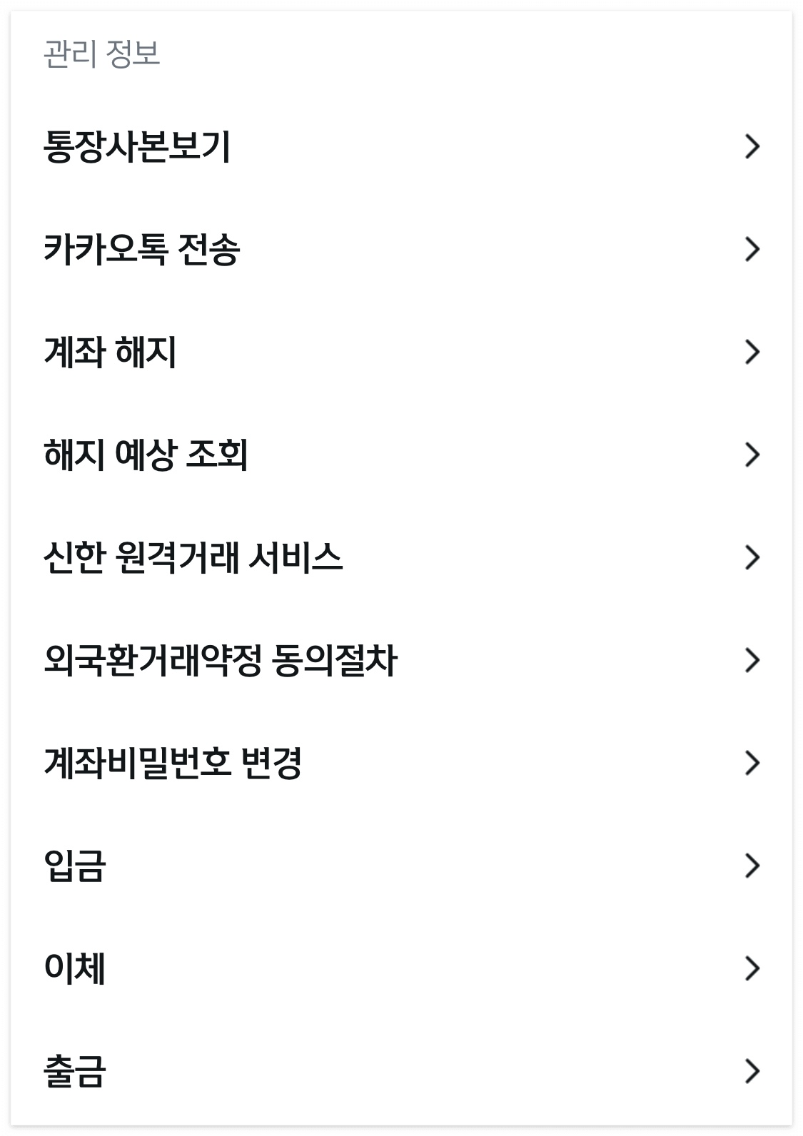 그러면 '관리 정보'라는 부분에 드디어 '이체'라는 항목이 보인다.