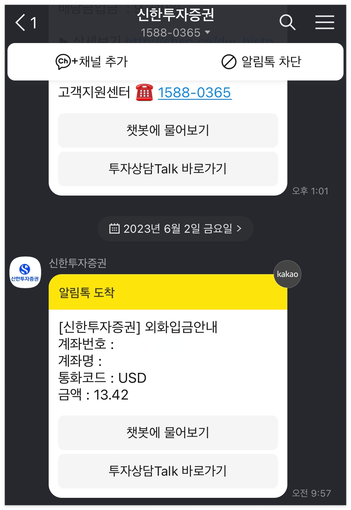 나는 신한은행으로 외화를 받았고, 신한 계열사인 신한투자증권에 해외주식 계좌가 있다.