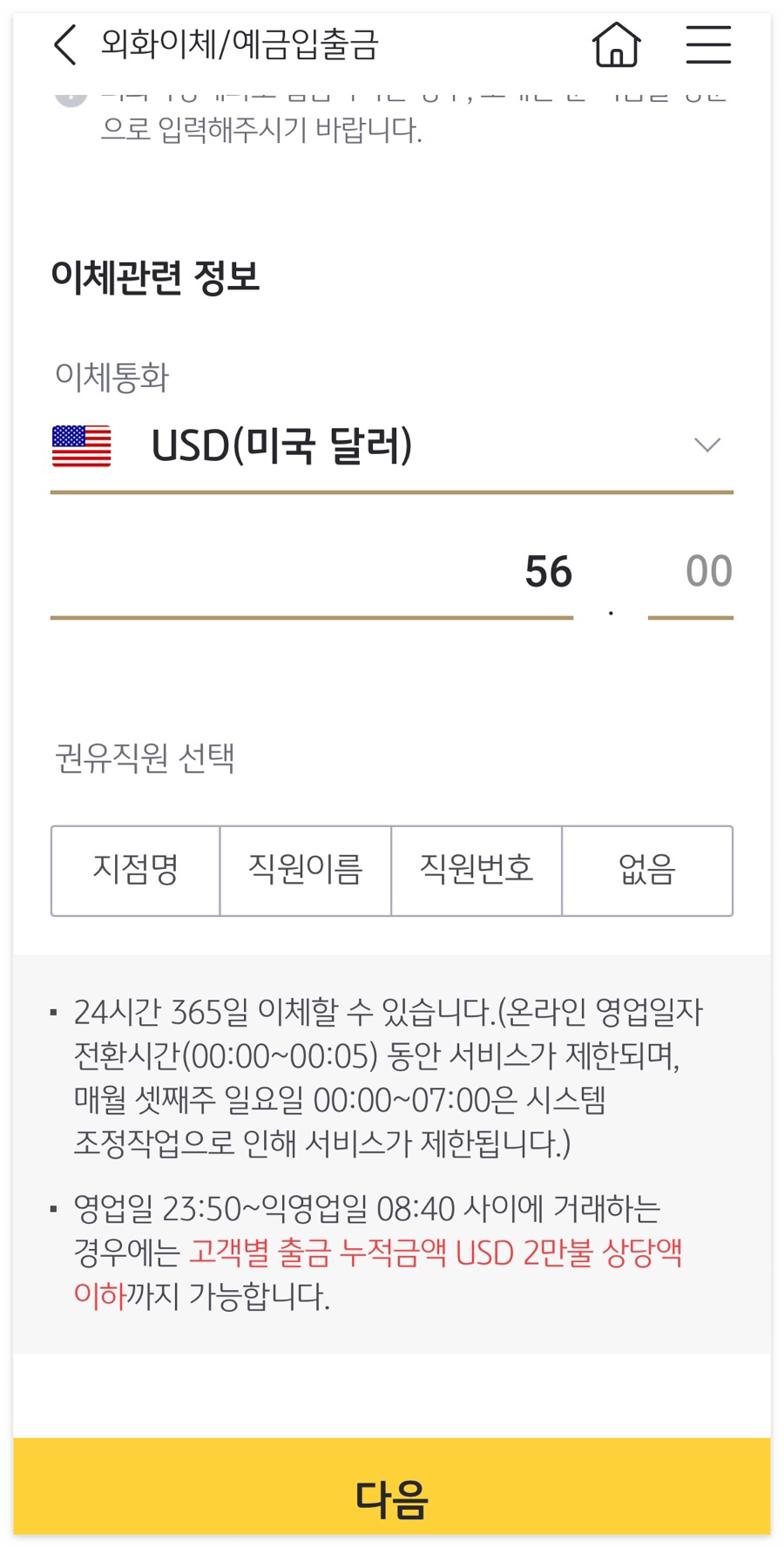 금액을 기재하고, 권유직원은 없으면 없다고 하면 됨. 근데 뭐 돈 이체하는 건데 권유직원을 왜 쓰라는 건지 모르겠음.