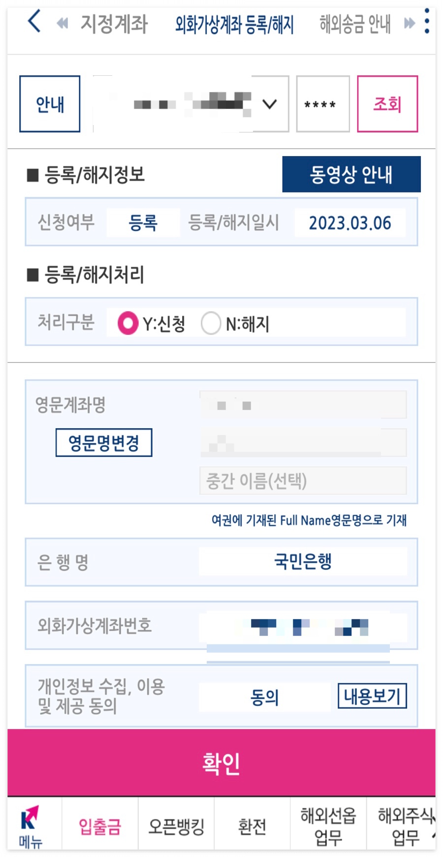 이런 것도 뭘로 만들어야 하는지 고민하는 분들이 있을 것 같아서 말해주면 나 같은 경우에는 참고로 ‘KB글로벌외화투자’라는 통장으로 개설함.