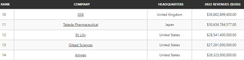 그런 의미에서 항상 관심 있게 지켜보는데 세계 최대의 제약회사 순위가 궁금해졌다.