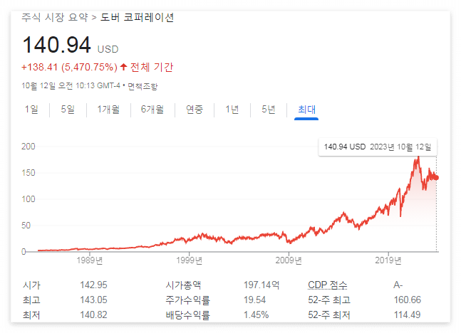 배당귀족주 1위는 바로 도버 코퍼레이션이다.