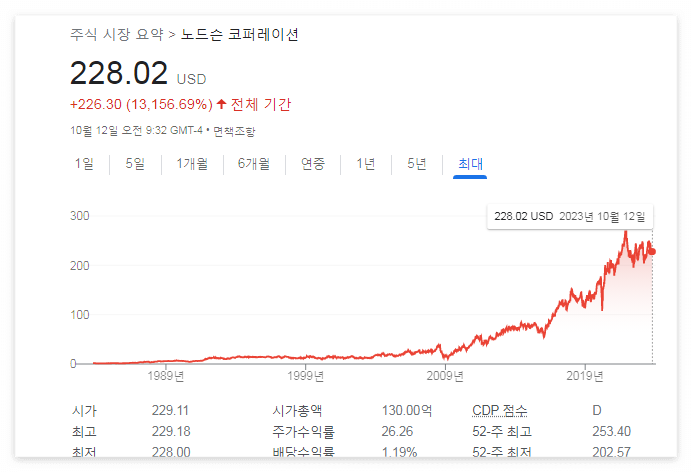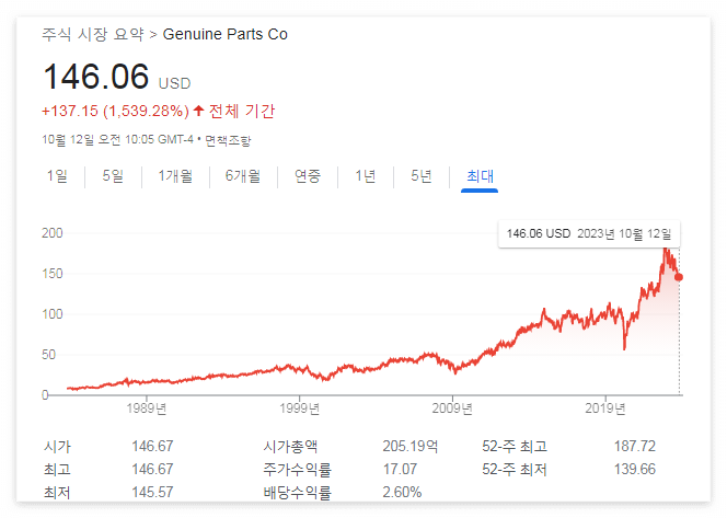 무려 68년 연속 배당을 늘렸고, 배당수익률은 1.45%다.