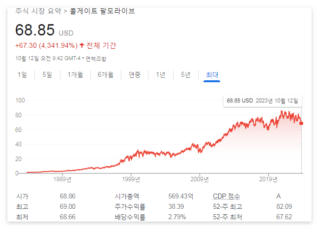 65년 연속 배당을 늘려왔으며, 현재 배당수익률은 6.72%다.