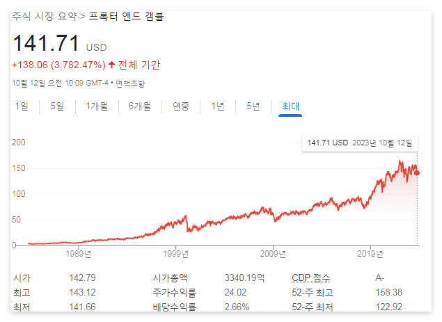 61년 연속 배당을 늘렸으며, 배당수익률은 3.47%다.