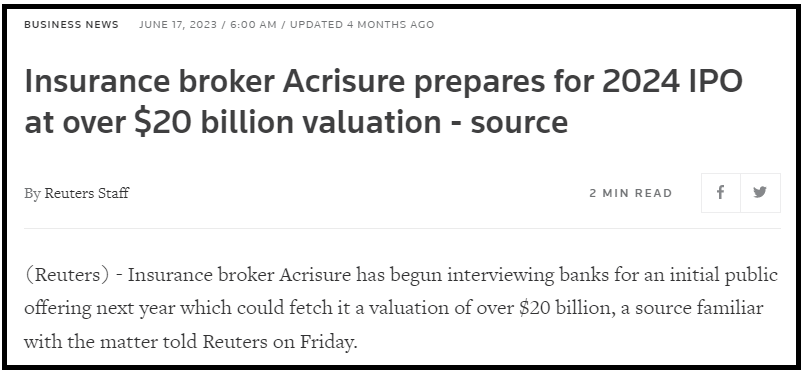 Acrisure 또한 비상장 회사다.