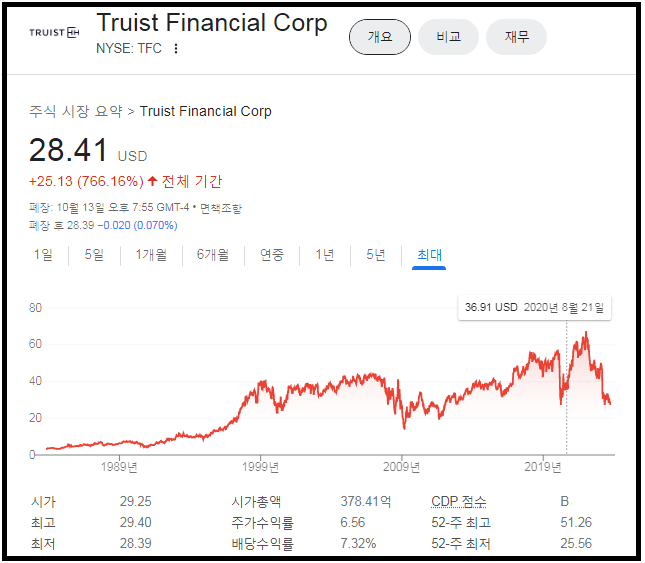 Truist Financial Corp. 를 통해 간접투자는 가능하며, 이 모기업은 미국 내 예금 규모로 6위에 해당하는 은행이다.