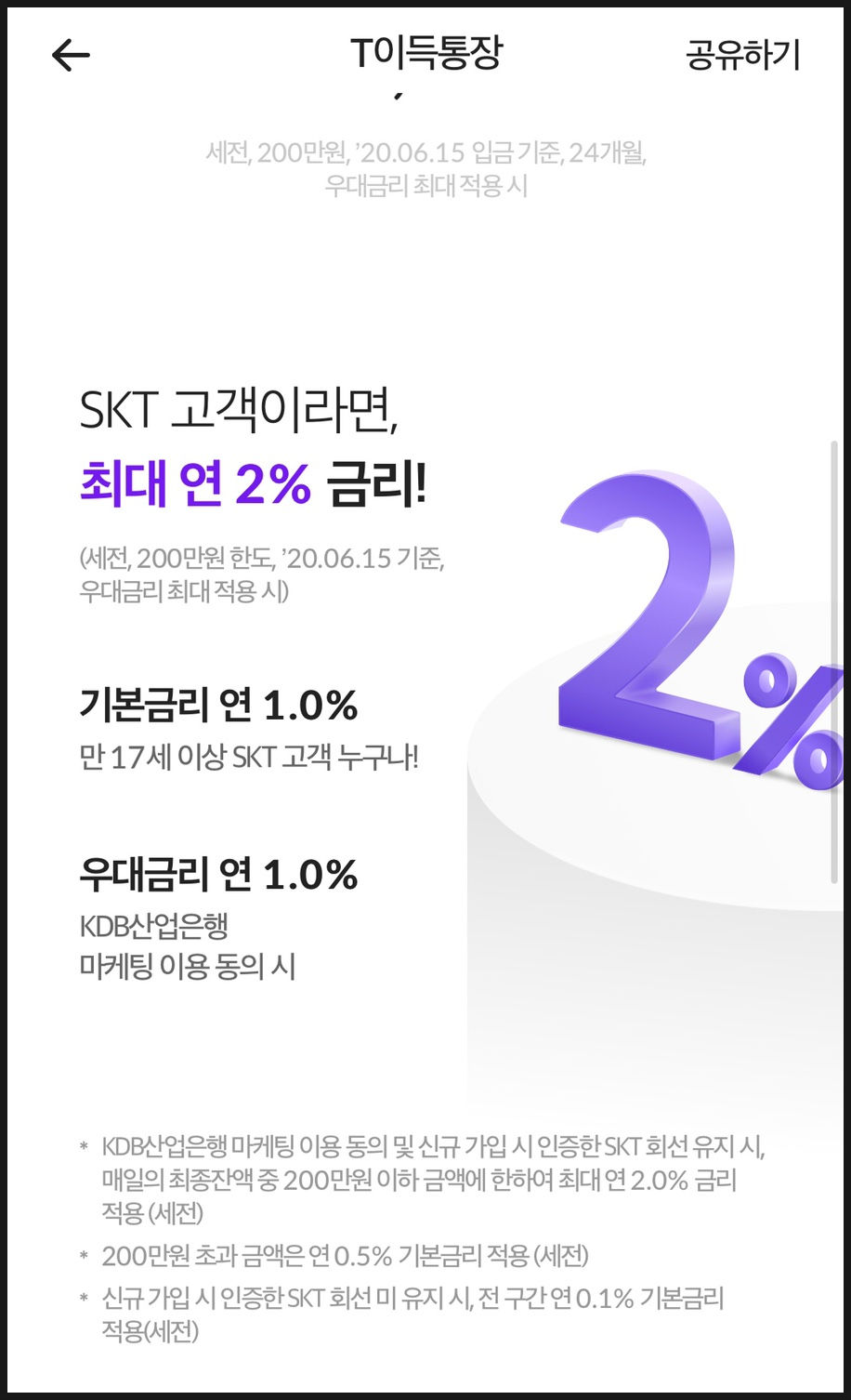 SKT 고객이면 기본금리 연 1.0%가 제공됩니다.