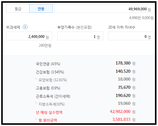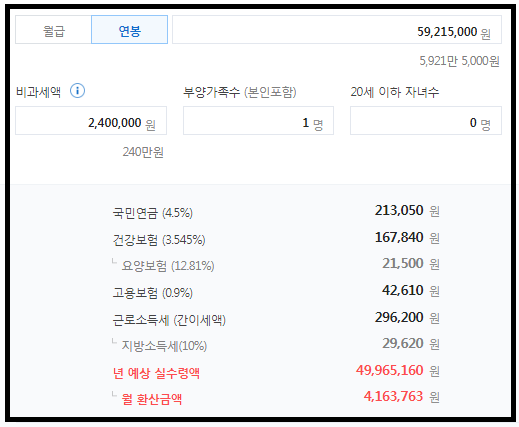 세후로는 약 4,996만원이고 월 실수령액은 416만원 정도다.