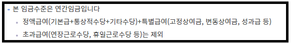 또한 임금 기준은 기본급 + 고정상여 + 통상수당 + 성과급을 다 더한 금액이다.