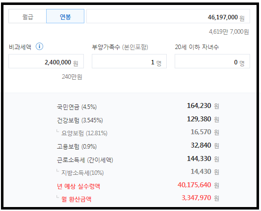 세후로는 약 4,640만원이고 월 실수령액은 386만원 정도다.