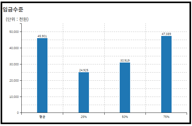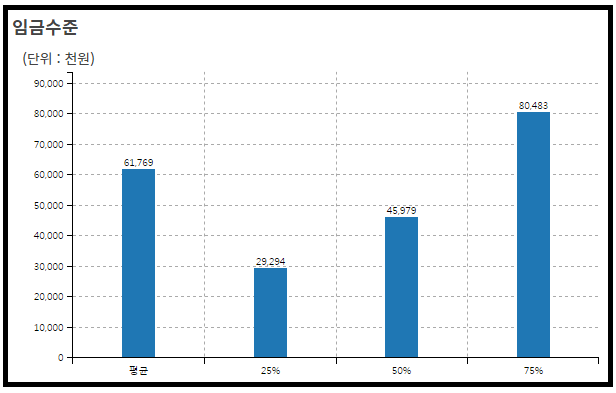 그러나 상위 25% (75% 그래프) 또한 7,317만원으로 임금이 내려갔다.