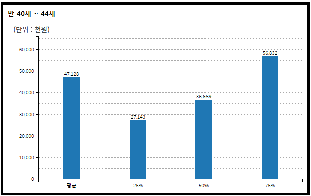 40대 초반 대한민국 여성 직장인의 평균 연간 임금은 세전 약 4,712만원이다.