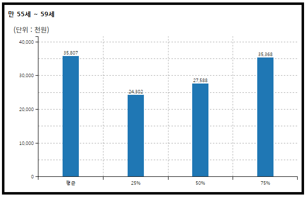 50대 중후반 대한민국 여성 직장인의 평균 연간 임금은 세전 약 3,580만원이다.