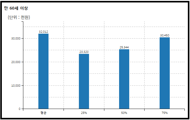 60대 이상 대한민국 여성 직장인의 평균 연간 임금은 세전 약 3,201만원이다.