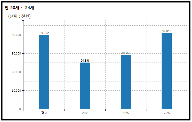 50대 초반 대한민국 여성 직장인의 평균 연간 임금은 세전 약 3,985만원이다.