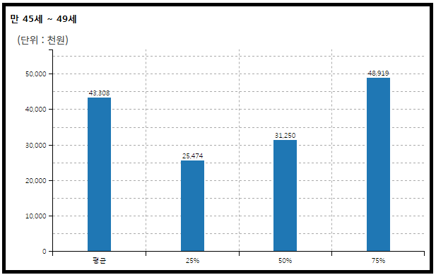 40대 중후반 대한민국 여성 직장인의 평균 연간 임금은 세전 약 4,330만원이다.