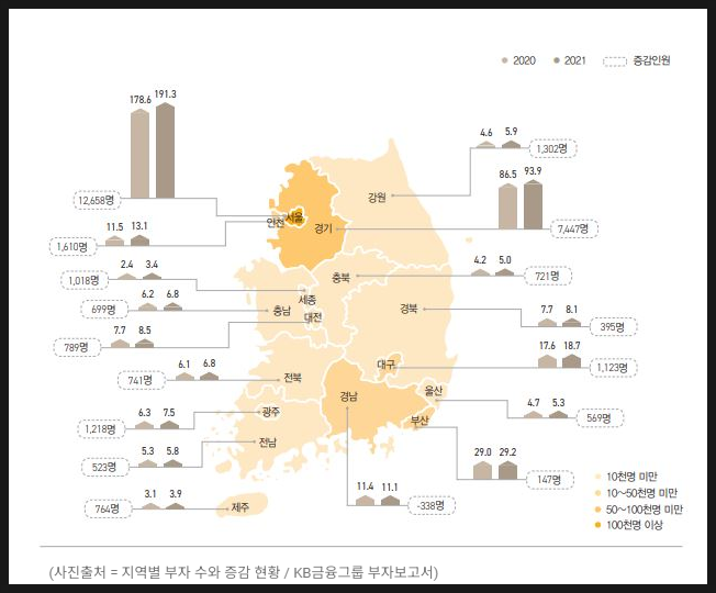KB금융그룹의 부자보고서만 봐도 서울과 경기를 제외하면 울산 다음으로 대구에 부자가 많다.