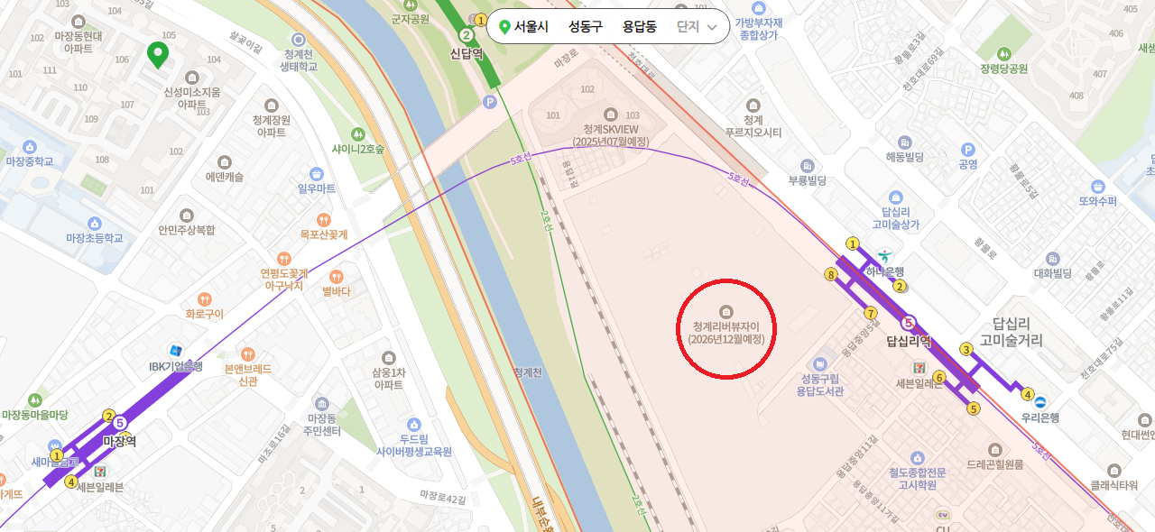 답십리역 초 역세권이다. 8번 출구 나오면 바로 청계리버뷰자이 역이다.