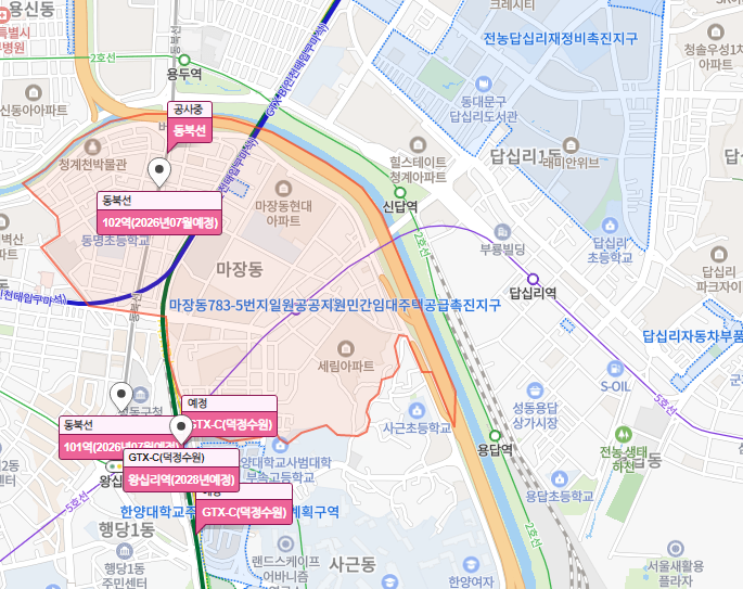 GTX-C와 동북선까지 들어오면 6개 노선이 지나가는 곳이 된다.
