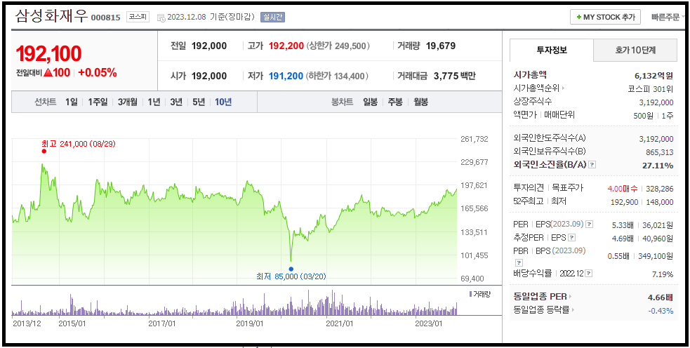 삼성화재의 우선주인데 주가가 전반적으로 우상향 하고 있어서 긍정적이다.