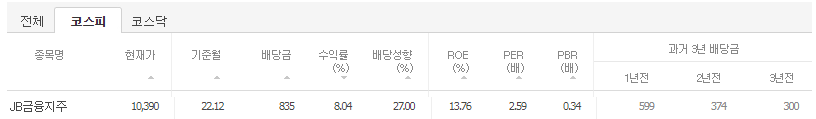 배당금이 300원 / 374원 / 599원 / 835원으로 3년 연속 증가했다.