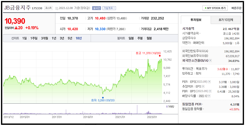 내년도 기준금리와 대출수요에 따라 주가는 등락할 수 있어서 주의해야 한다.