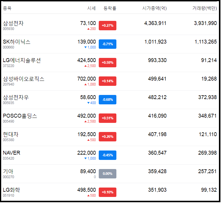 이렇게 코스피 시가총액 Top 10을 알아봤다.