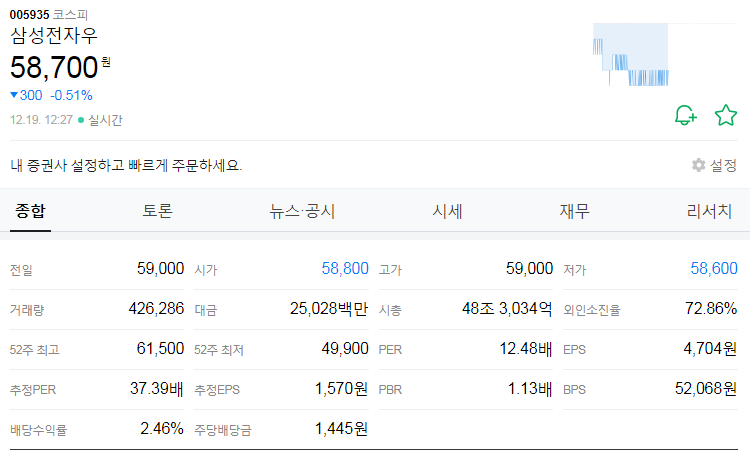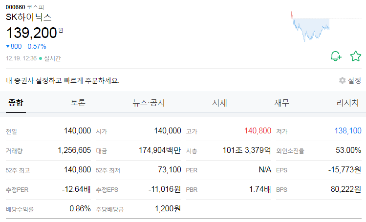 기준은 2023년 12월 19일 장중 기준이다.