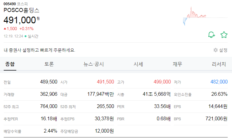 6위 POSCO 홀딩스
