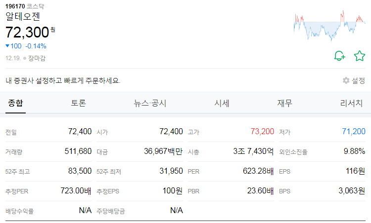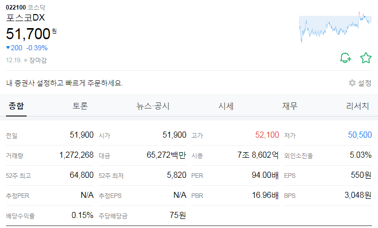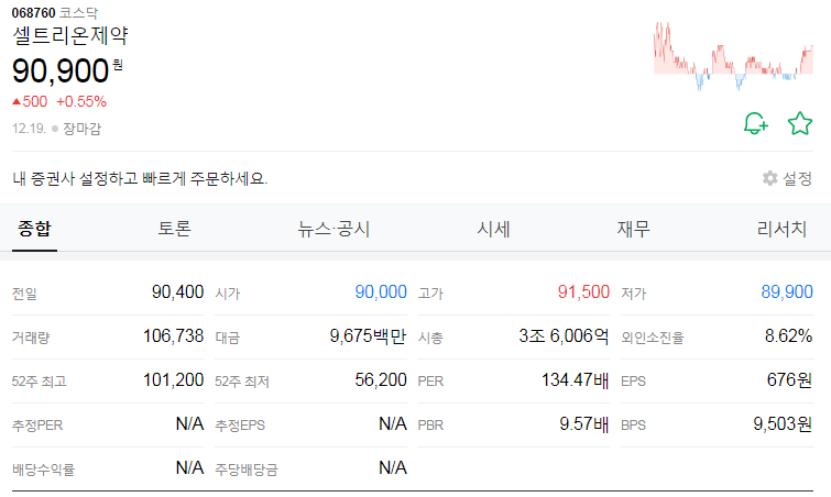 마지막 거래 기준 시가총액은 12.4조 원이었다.