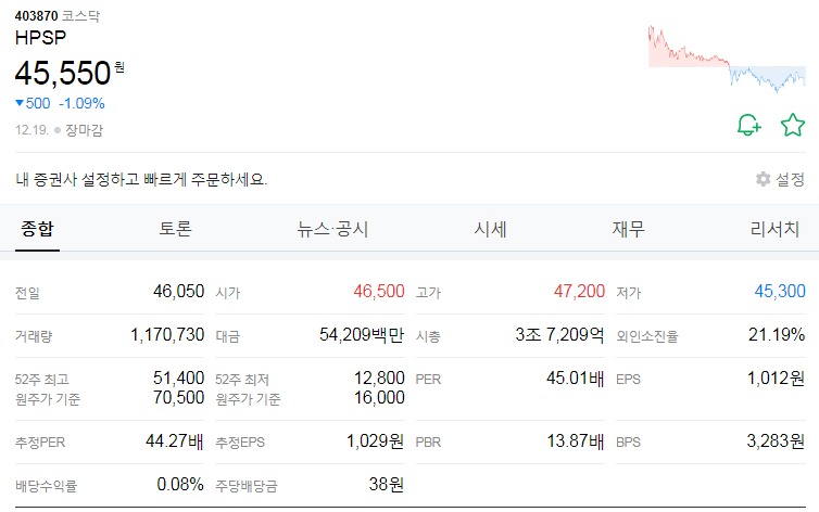 HPSP는 이름으로는 조금 생소한 기업일 수 있다.