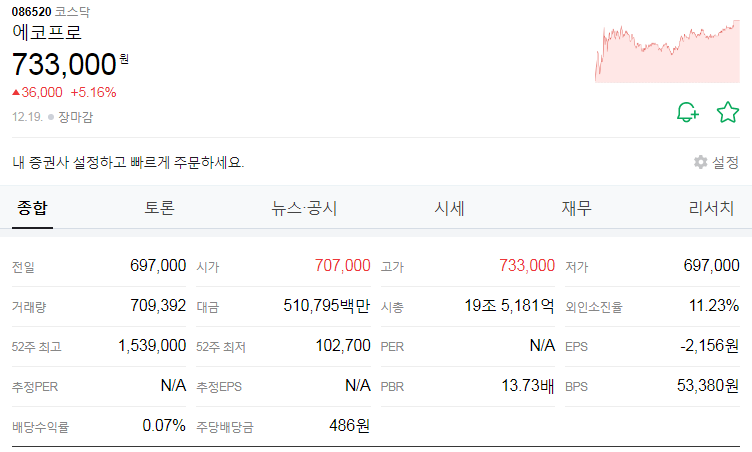 핵심자회사인 에코프로비엠과 에코프로머티리얼즈가 별도로 상장되어 있어, 향후 상승폭이 얼마나 더 늘어날지는 미지수다.