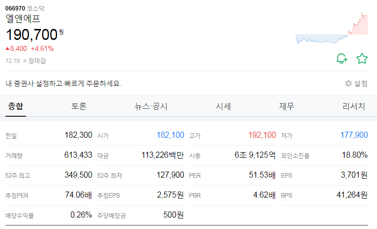 에코프로라는 1위 기업이 있지만 엘앤에프도 코스닥에서 그다음으로 규모가 큰 기업이다.