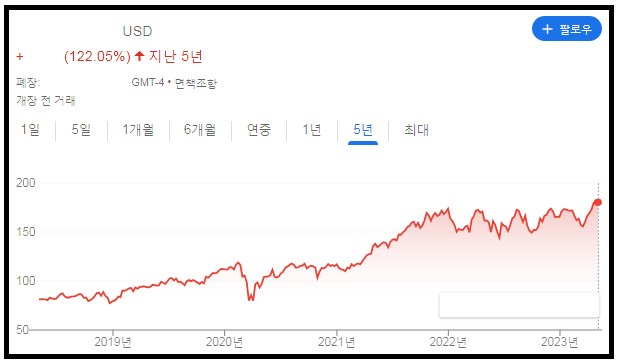 회사주식은 5년간 100% 이상이 올랐고, 내가 입사한 시점부터 따지면 3배 이상이 올랐다.