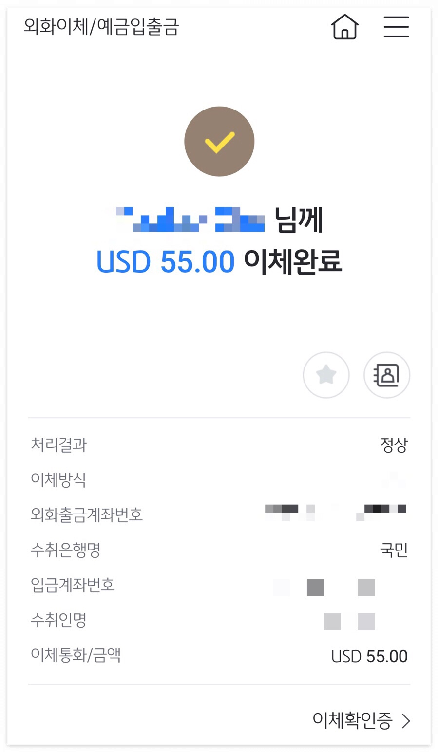 KB국민은행 외화계좌로 외화 송금을 우선 진행하자.